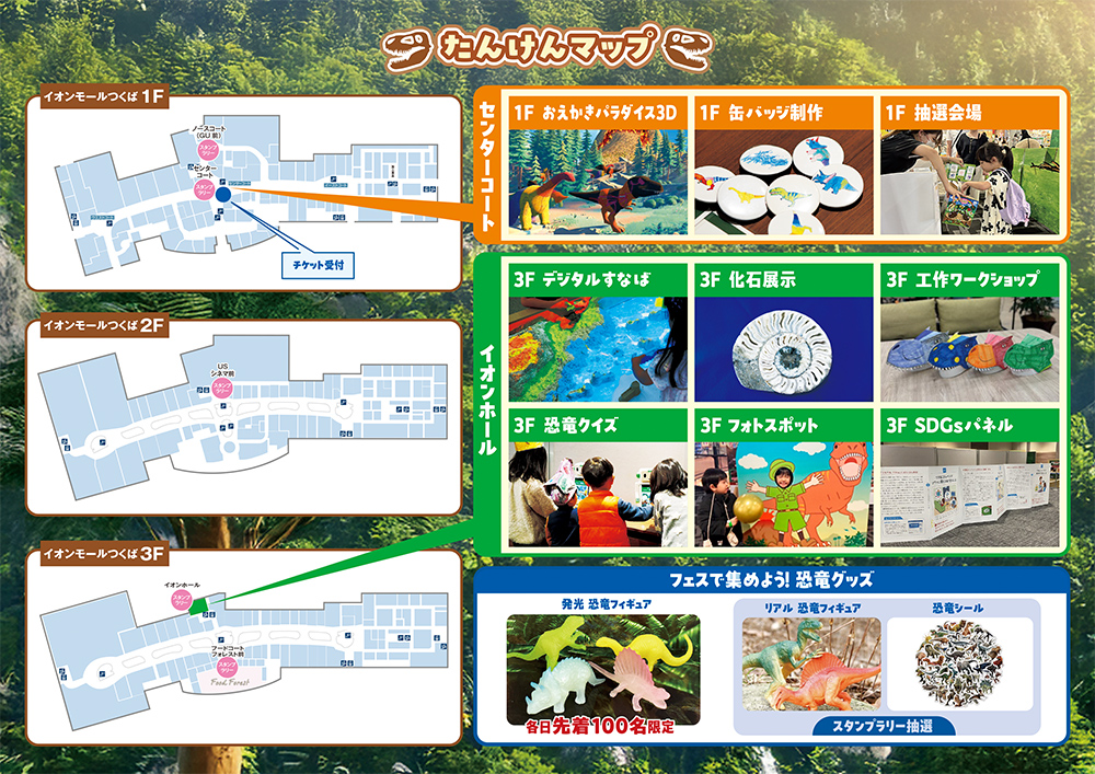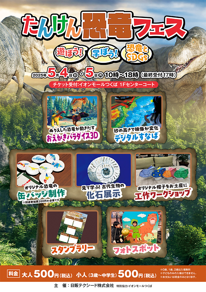 イオンモールつくば(茨城県つくば市)で2025年5月4日(日)~5月5日(月)に「たんけん恐竜フェス」を開催しました。