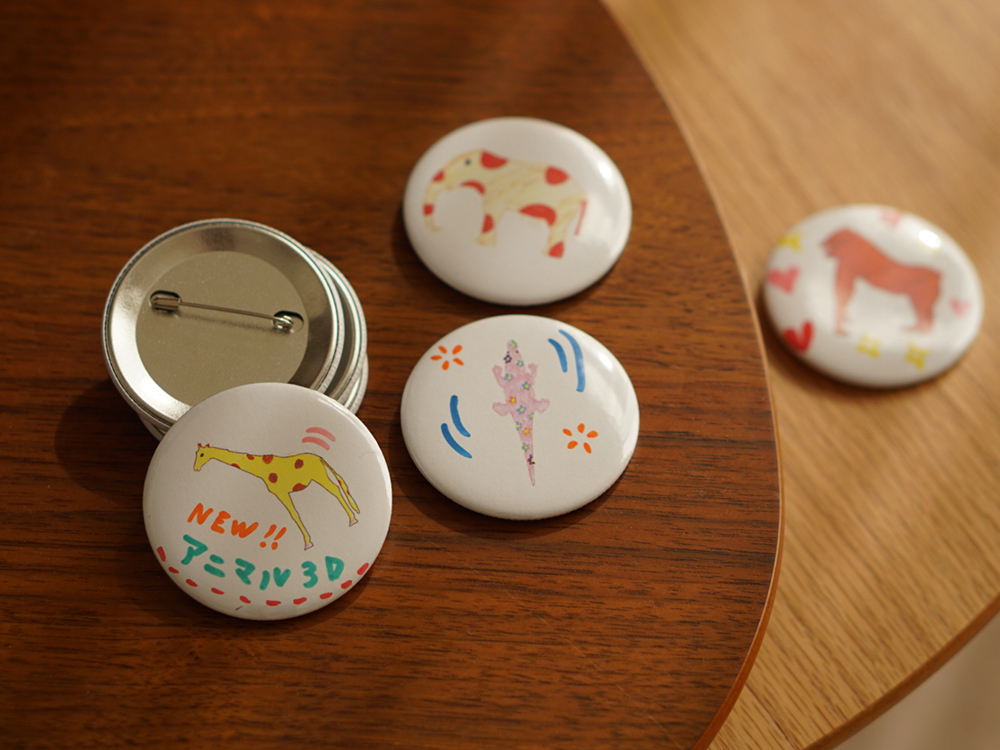 おえかきパラダイスで描いた絵をその場で縮小印刷して缶バッジを作ることができます。