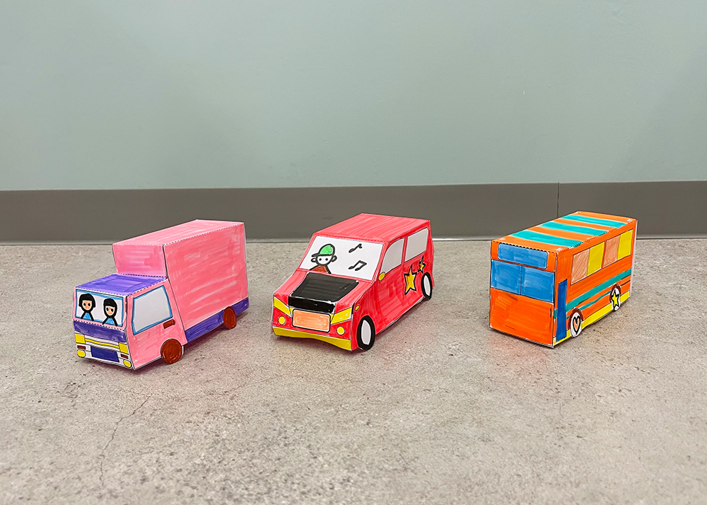 ペーパークラフトは車、バス、トラックの3種類。オリジナルの展開図を作ることもできます。