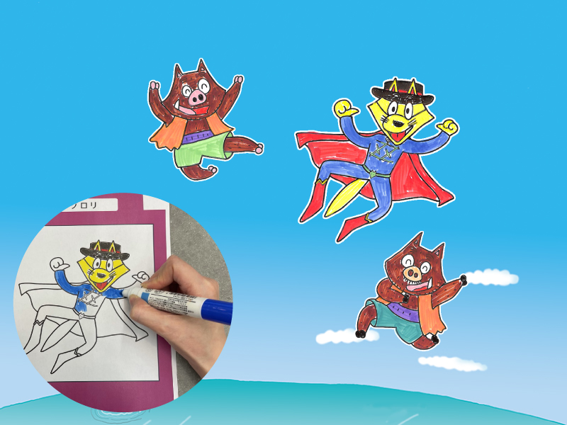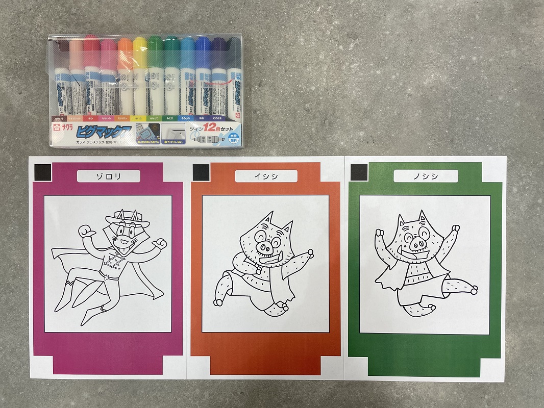 「ゾロリ」「イシシ」「ノシシ」の3種類のぬりえ用紙をご用意しました。