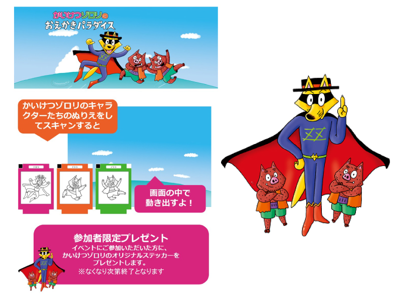 年間200件以上のイベント導入実績を誇る「おえかきパラダイス」が、累計3,500万部を超える児童書シリーズ「かいけつゾロリ」とコラボレーション。